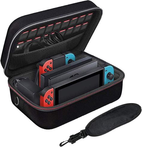 - [Multiple Storage]:Carry case for nintendo switch features a compact and portable size, but still provides room to organize everything individually. The hard exterior case can protect and fit Nintendo Switch console, Charging Dock, Joy-con Grips, Pro Controller, Poke Ball Plus, Joy-Con Straps, AC Charging adapter.